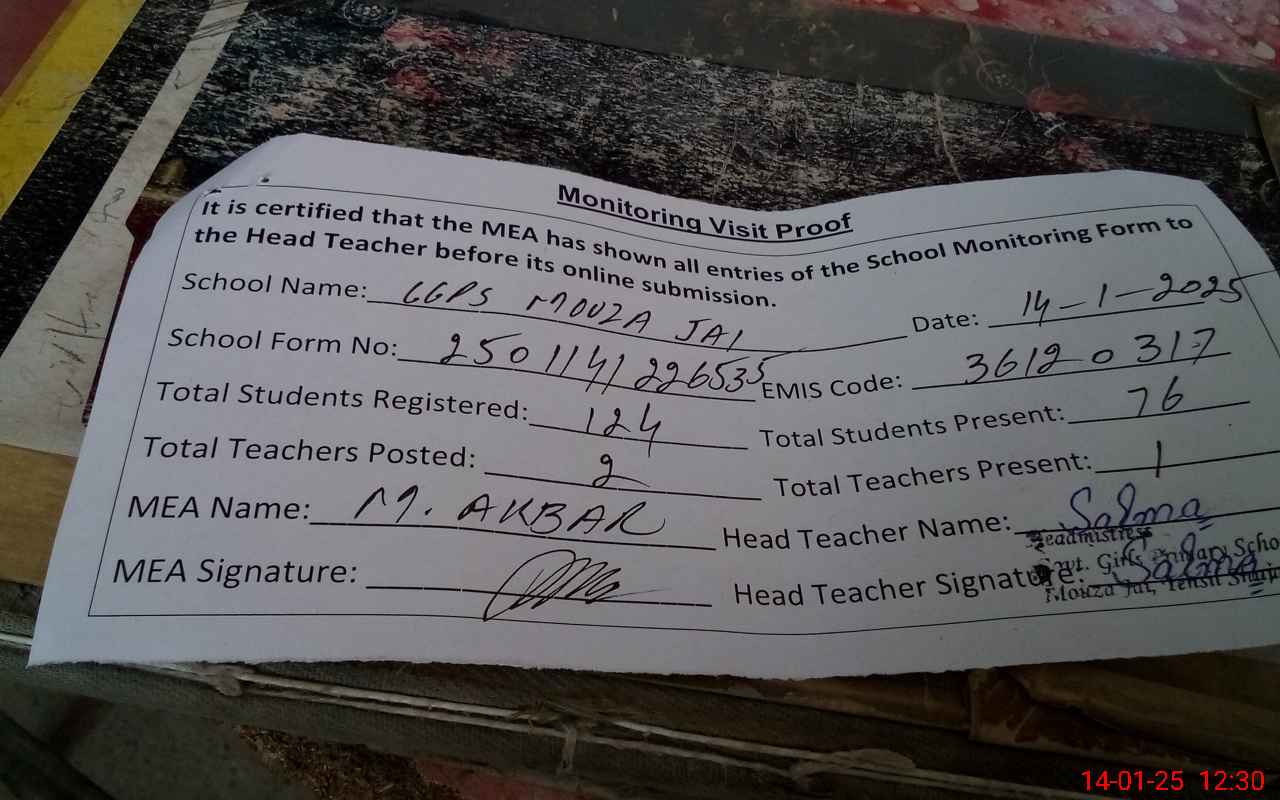 | EMIS Code: 36120317 | Name of School: GGPS MOUZA JAI SHUJABAD | |||