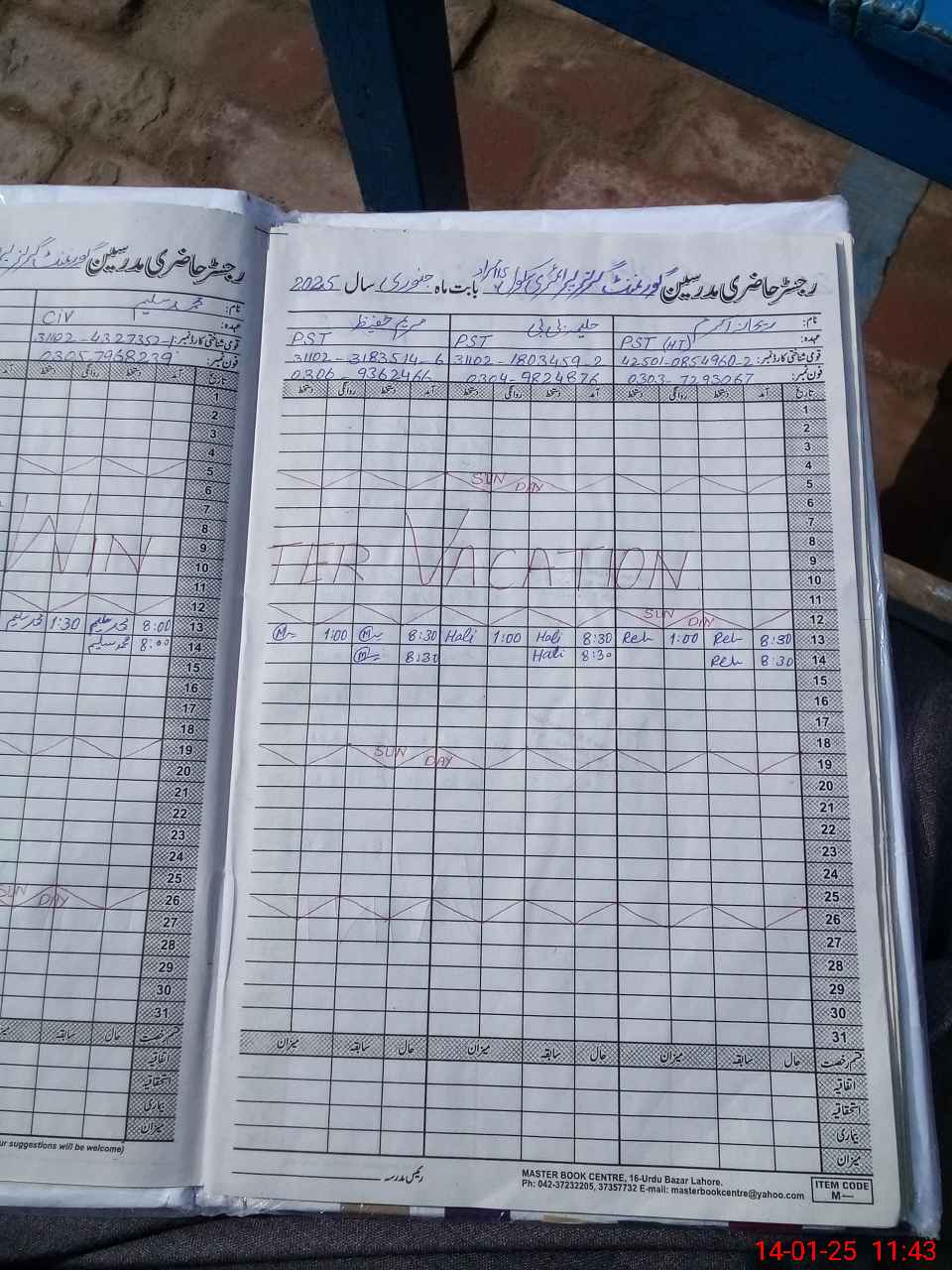 | CNIC | Full Name | Designation | R/C | Absence During Last Calender Month |