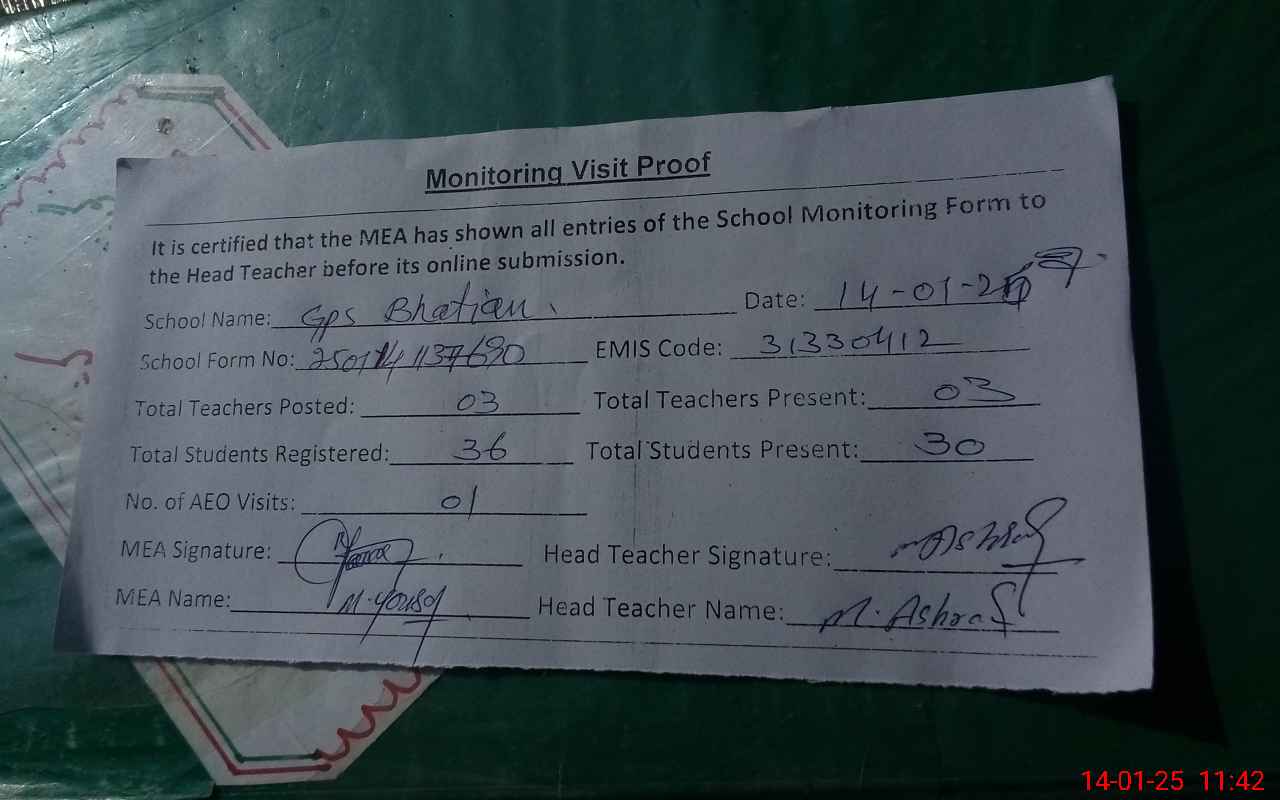 | EMIS Code: 31330412 | Name of School: GPS BASTI BHUTTIAN | |||