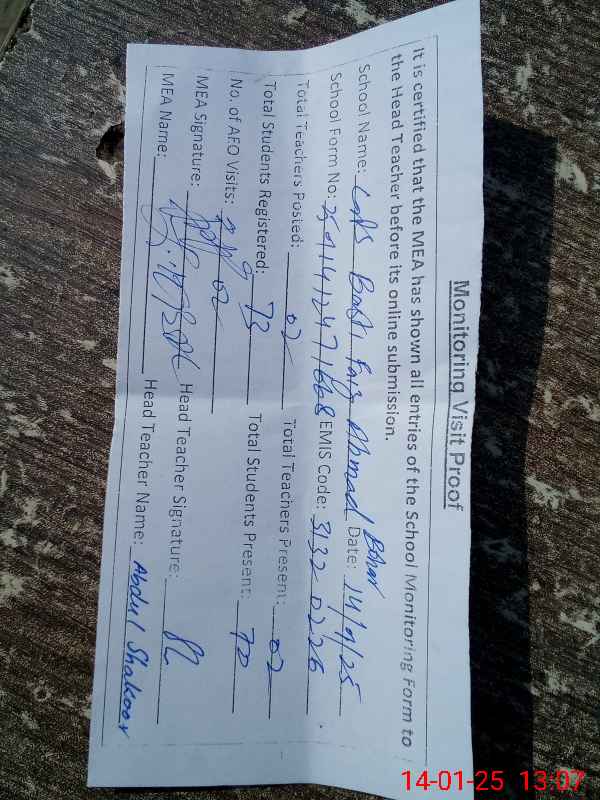 | EMIS Code: 31320226 | Name of School: GPS BASTI FAIZ AHMAD BOHAR | |||