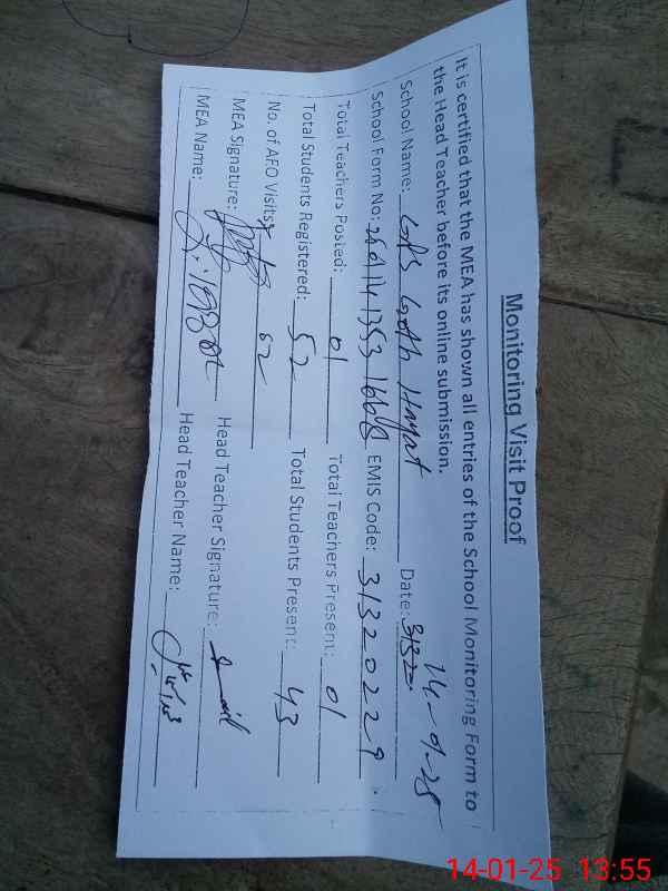 | Certified that this School was Inspected by the Undersigned MEA/DMO Today and the Information Stated Above is as Per Record. | |||||