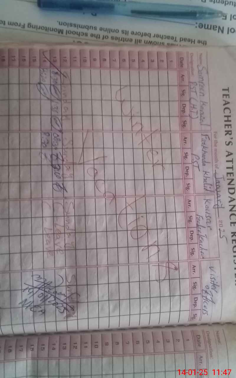 | Attendance Register | Head Teacher | MEA with School | Visit Proof |