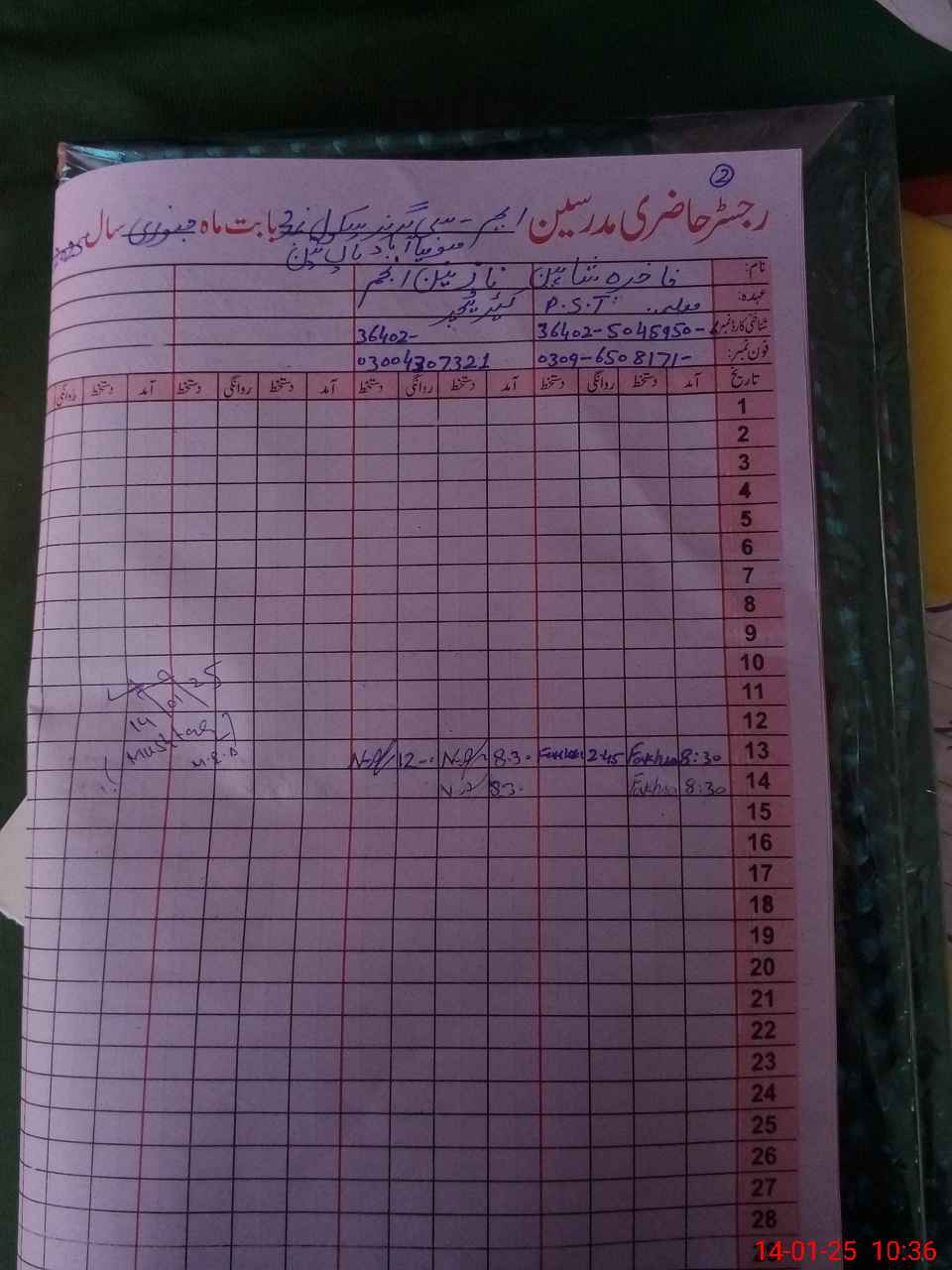 | Name: Sh**** Ro**** Designation: (School Headmaster's/Headmistress's) PST Phone/Cell Number: 03**** |