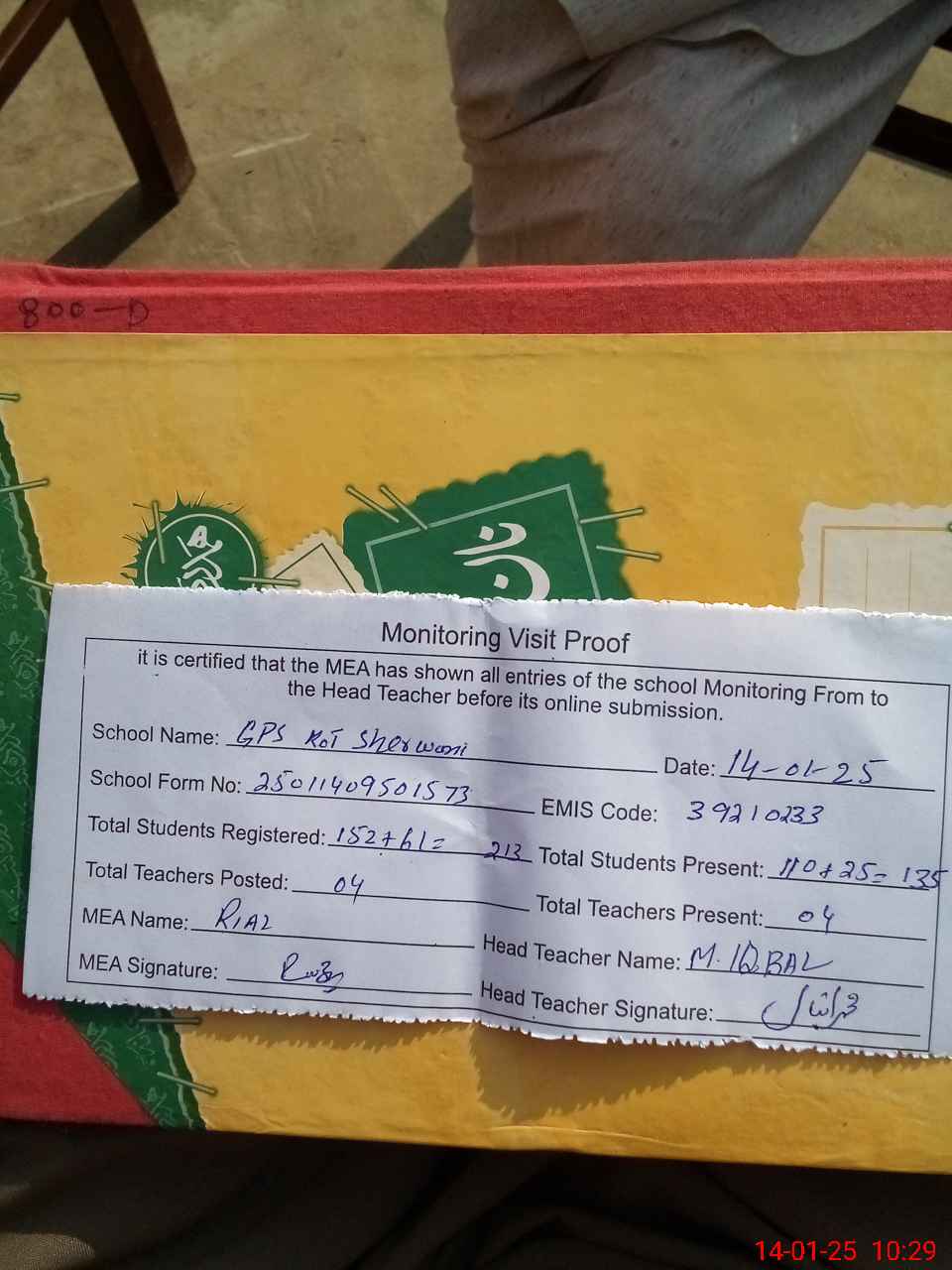 | EMIS Code: 39210233 | Name of School: GPS KOT SHERWANI DAKHLI RAKH MALKA HANS | |||