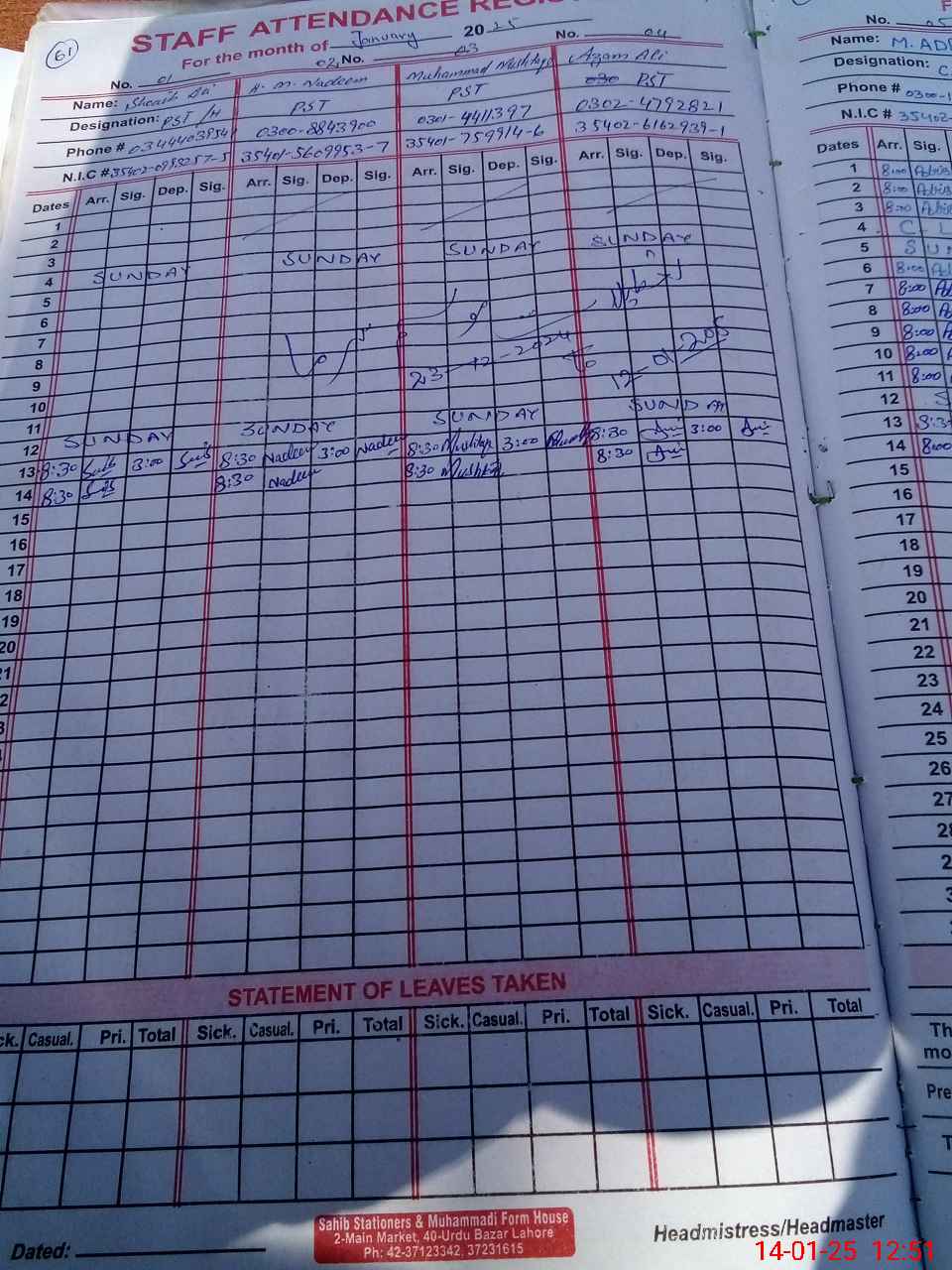 | Name: SH**** AL**** Designation: (School Headmaster's/Headmistress's) PST Phone/Cell Number: 03**** |