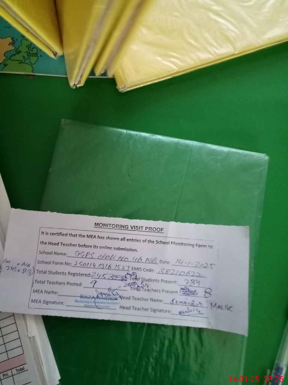 | Attendance Register | Head Teacher | MEA with School | Visit Proof |