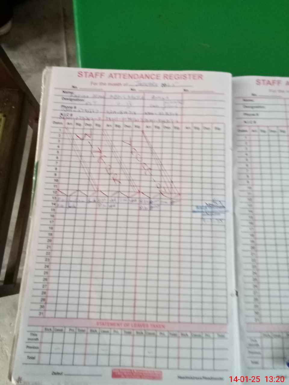 | CNIC | Full Name | Designation | R/C | Absence During Last Calender Month |