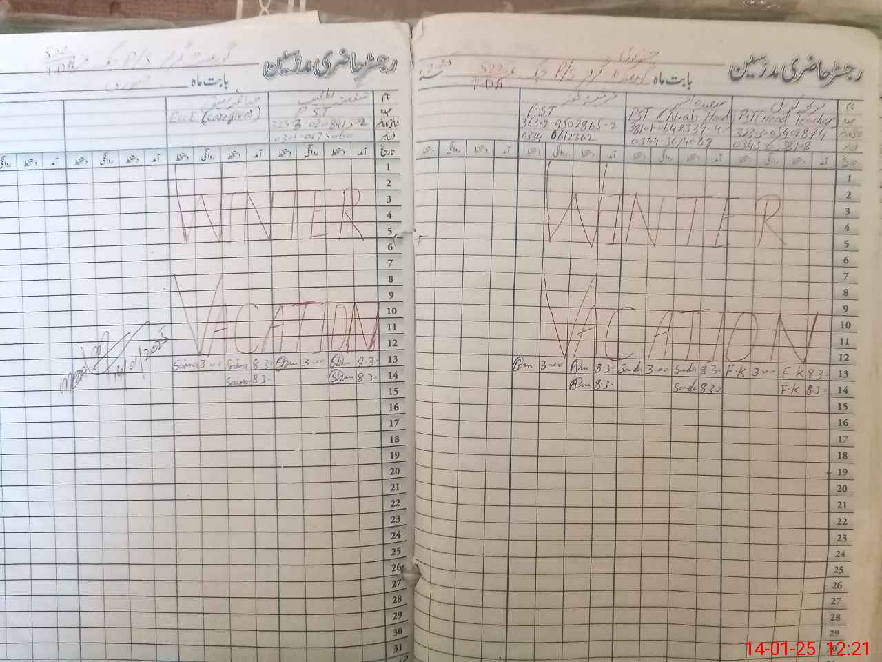 | CNIC | Full Name | Designation | R/C | Absence During Last Calender Month |