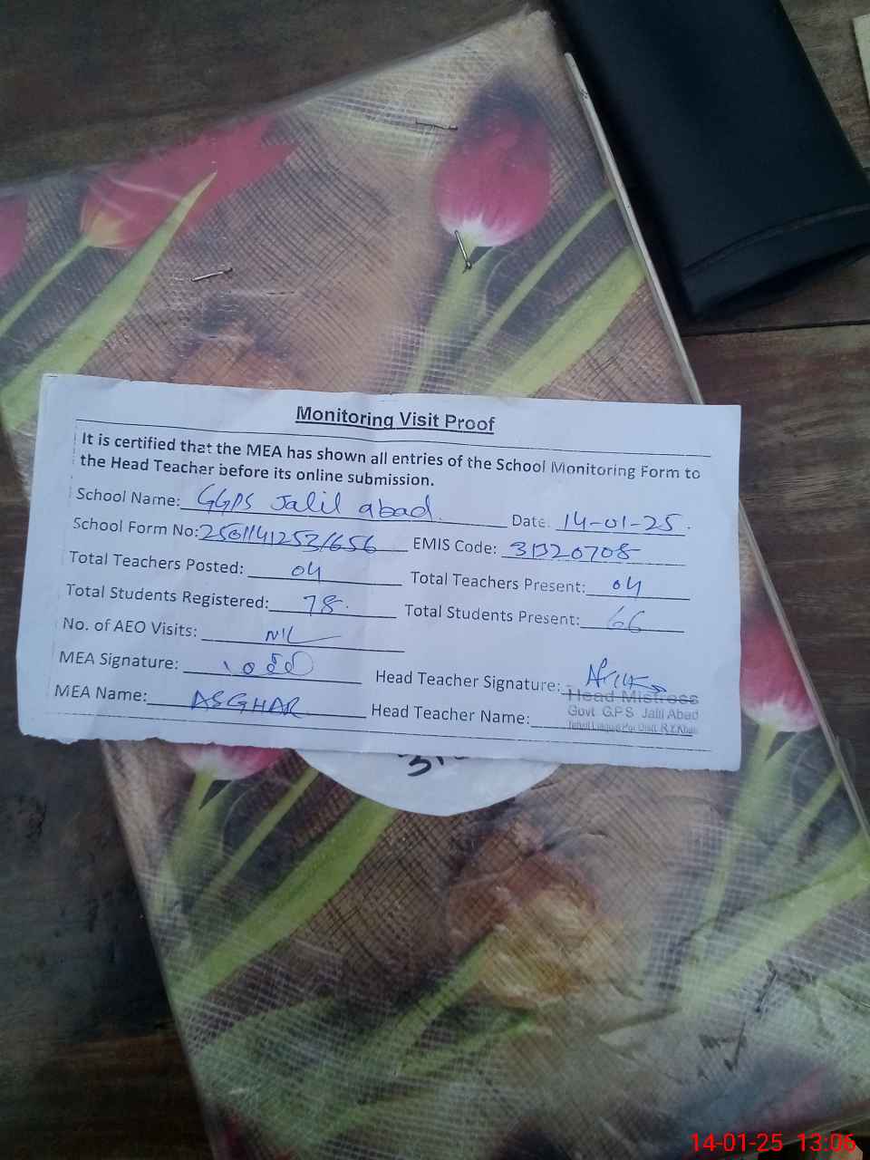 | EMIS Code: 31320708 | Name of School: GGPS JALIL ABAD | |||