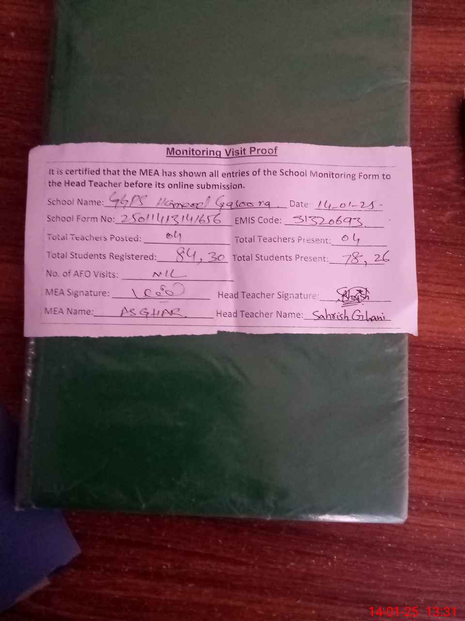 | EMIS Code: 31320693 | Name of School: GGPS HAMEED KHASOORA | |||
