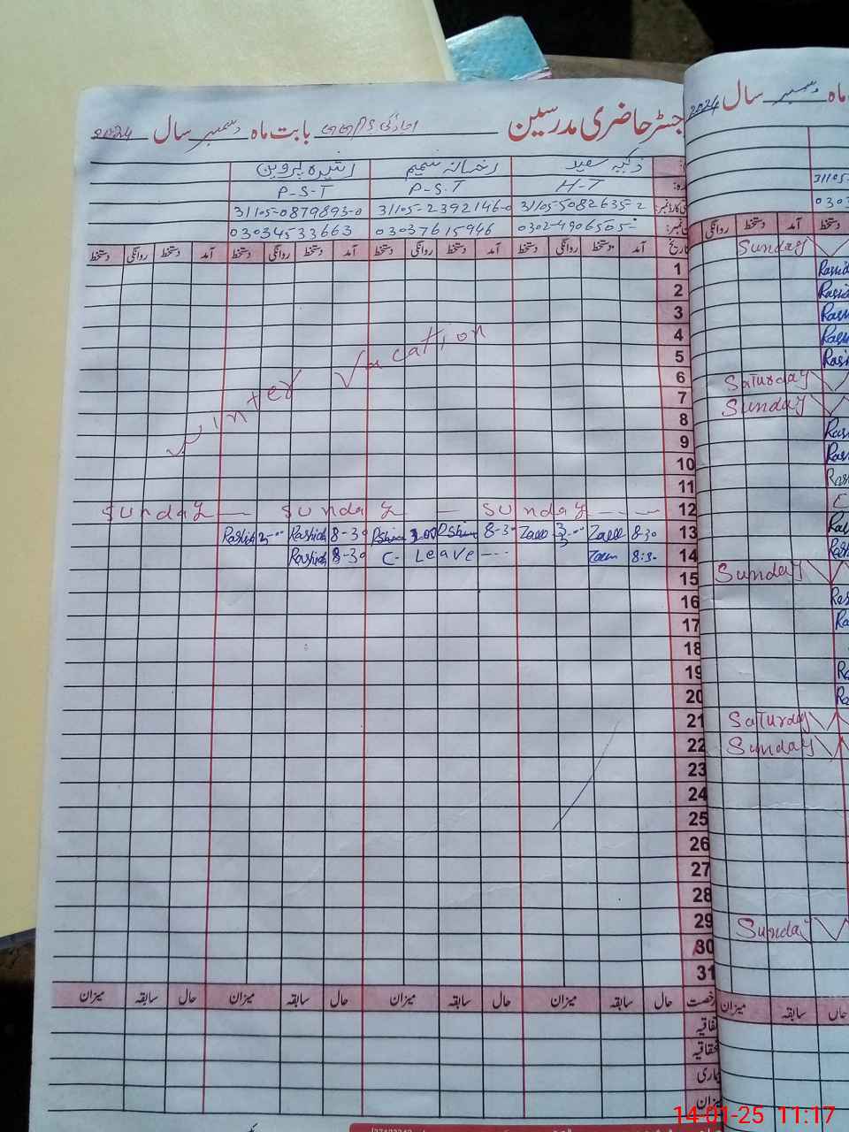| CNIC | Full Name | Designation | R/C | Absence During Last Calender Month |