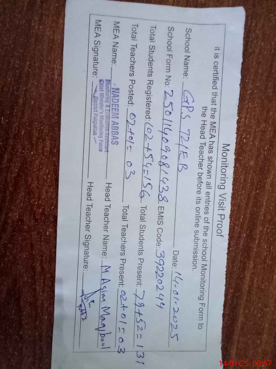 | EMIS Code: 39220244 | Name of School: GPS 72 EB | |||