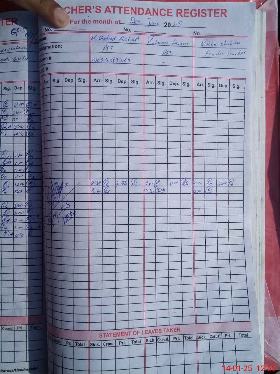 | Name: MU**** SH**** AR**** Designation: (School Headmaster's/Headmistress's) PST Phone/Cell Number: 03**** |