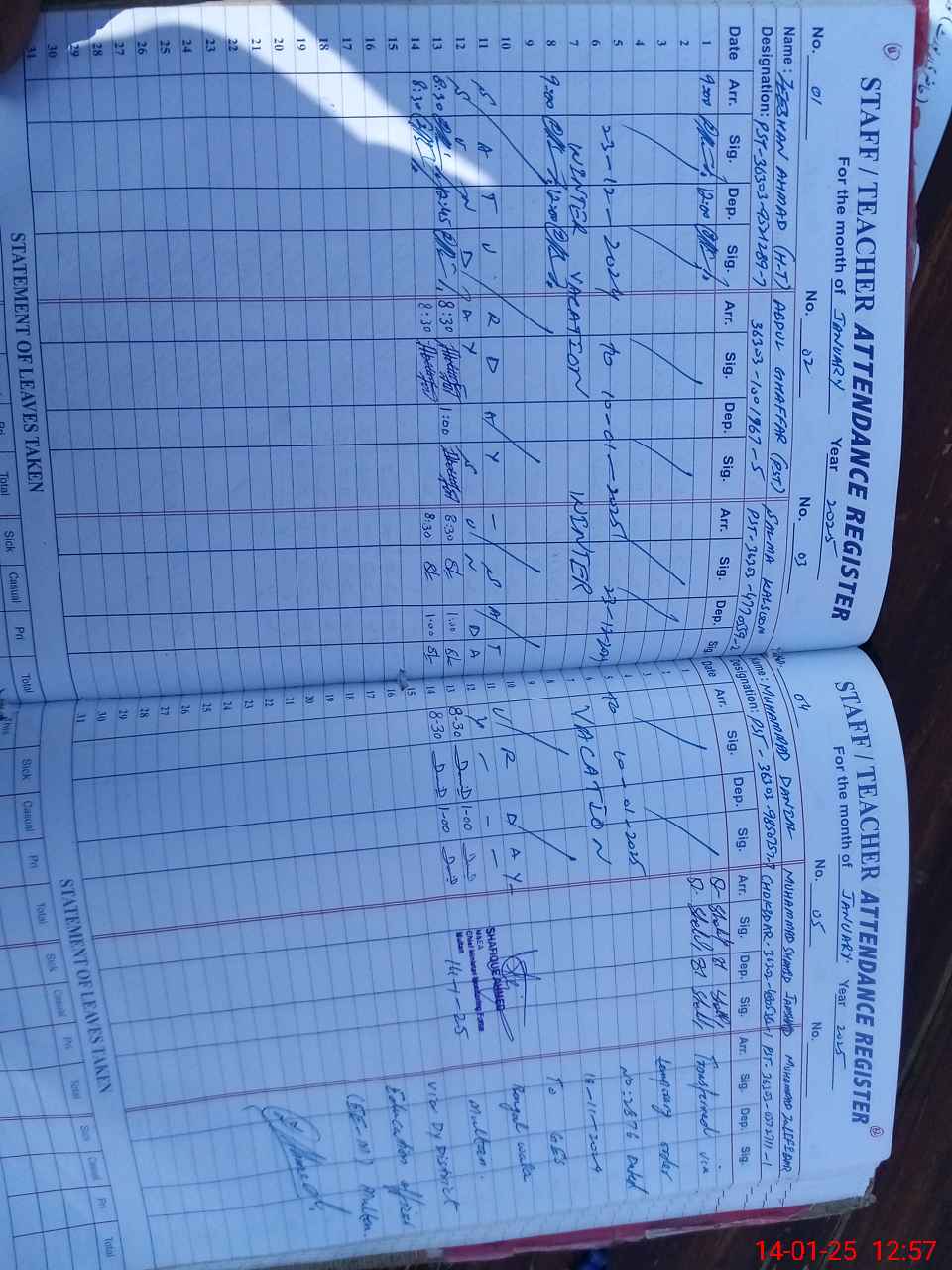 | CNIC | Full Name | Designation | R/C | Absence during last cal. month |