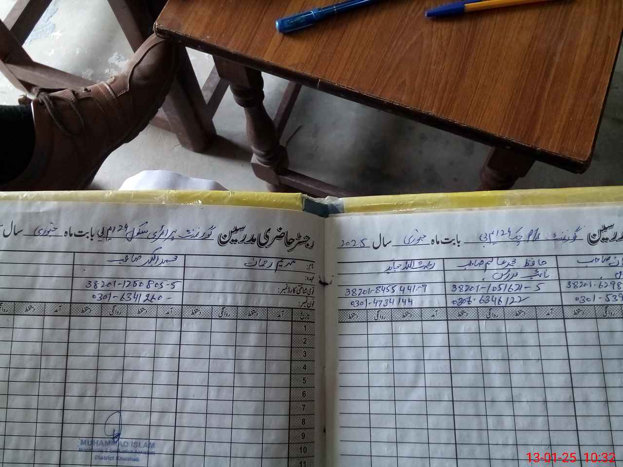 | Name: Mu**** Re**** Designation: (School Headmaster's/Headmistress's) PST/PTC/JV Phone/Cell Number: 03**** |