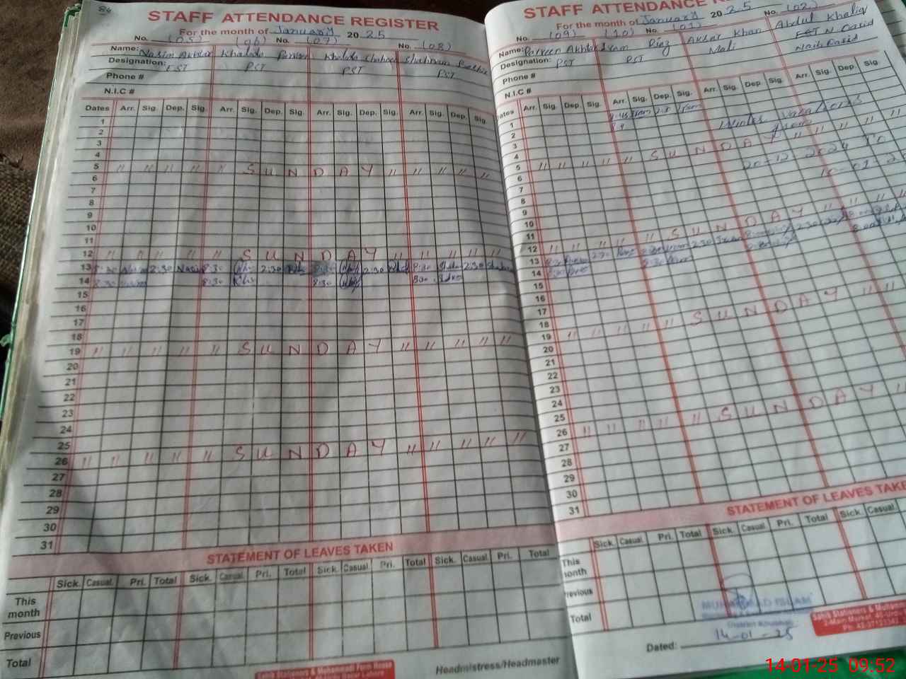 | CNIC | Full Name | Designation | R/C | Absence During Last Calender Month |