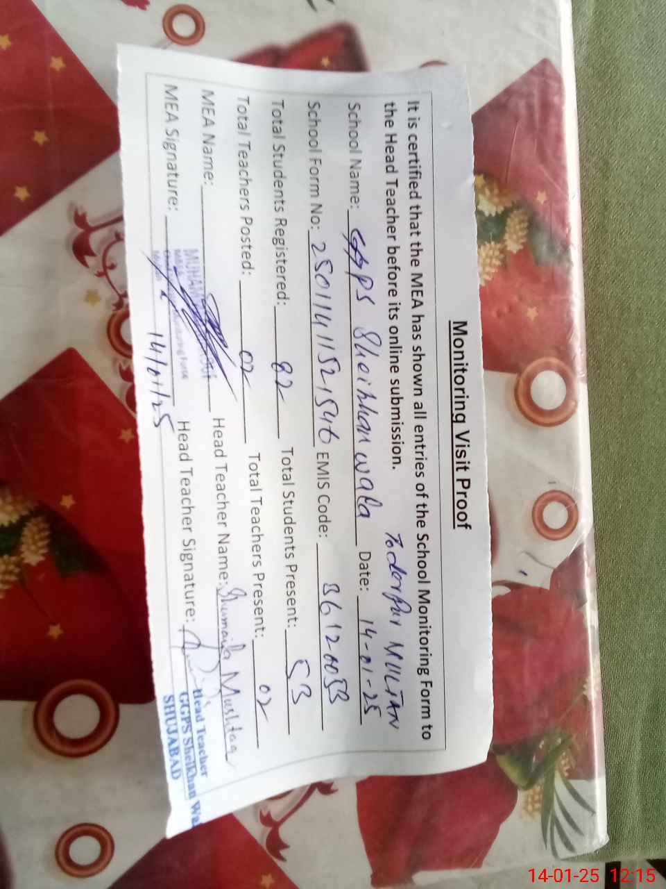 | EMIS Code: 36120053 | Name of School: GGPS SHEIKHAN WALA MUZA TODARPUR SHUJABAD | |||