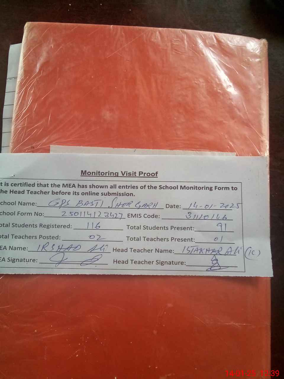 | Attendance Register | Head Teacher | MEA with School | Visit Proof |