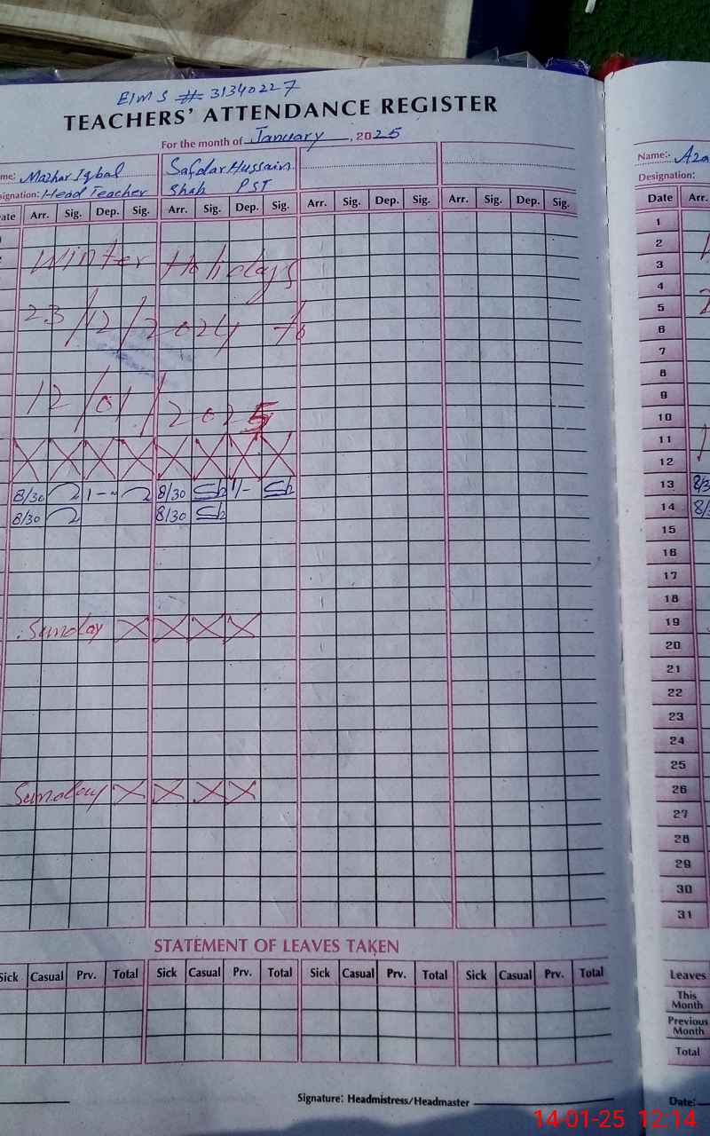 | Name: MA**** IQ**** Designation: (School Headmaster's/Headmistress's) PST Phone/Cell Number: 03**** |