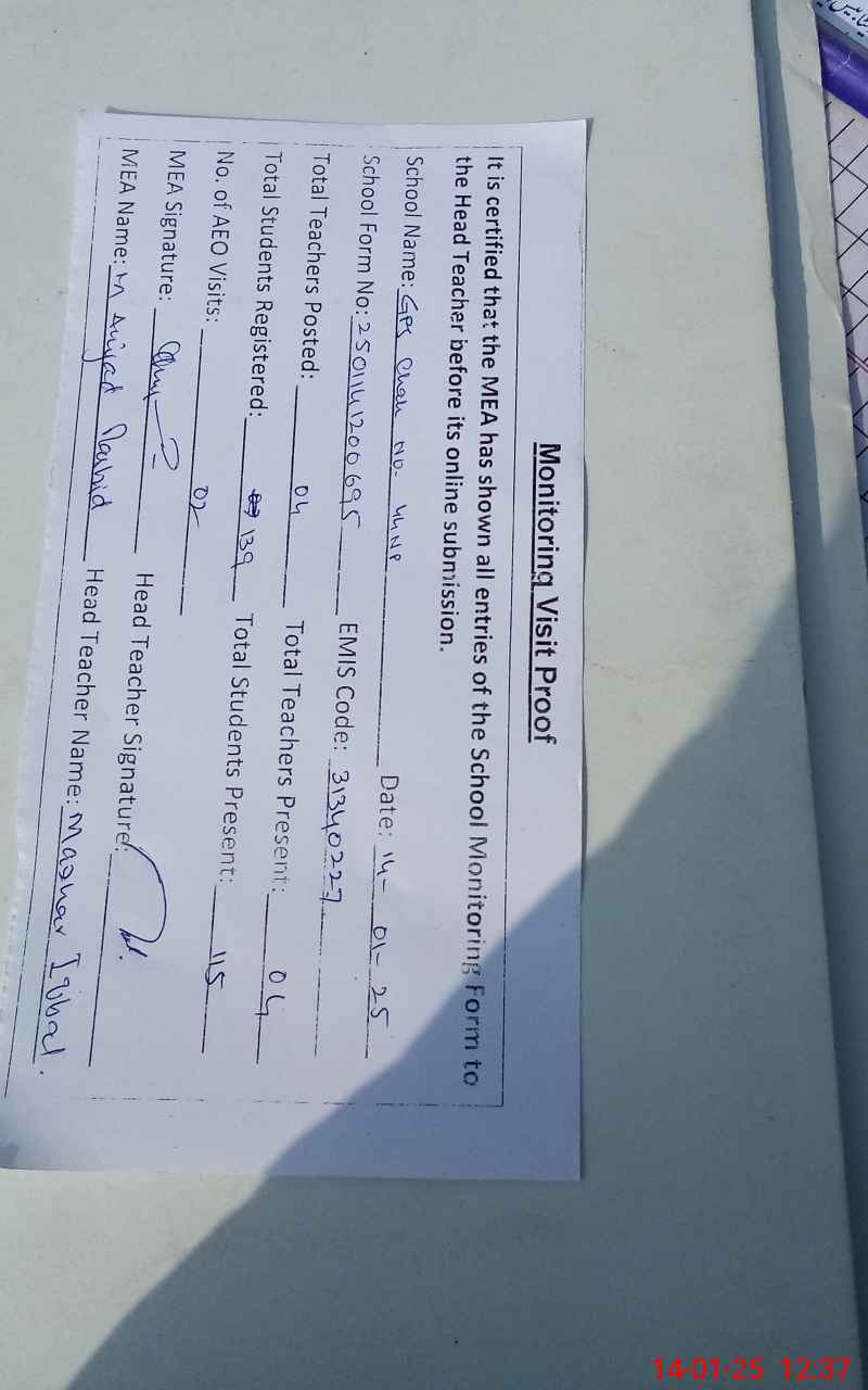 | EMIS Code: 31340227 | Name of School: GPS CHAK NO. 44 NP | |||