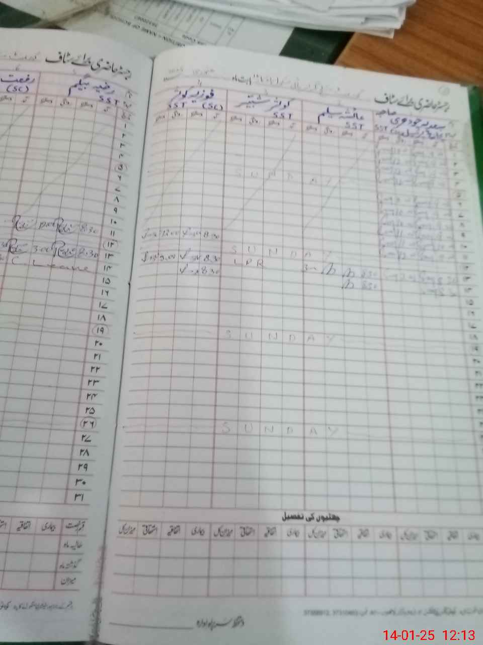 | CNIC | Full Name | Designation | R/C | Absence During Last Calender Month |