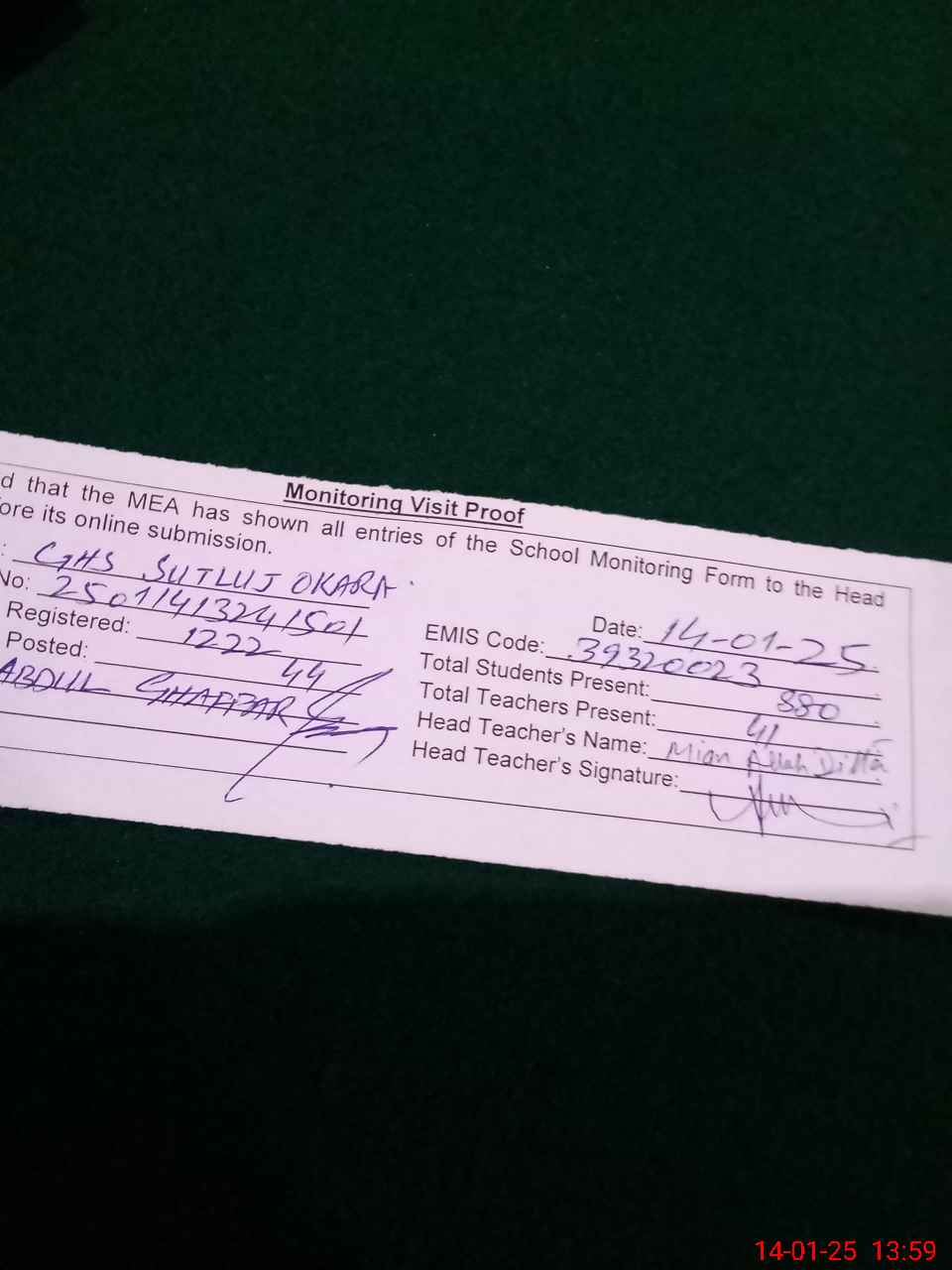 | EMIS Code: 39320023 | Name of School: GHS SUTLUJ OKARA | |||
