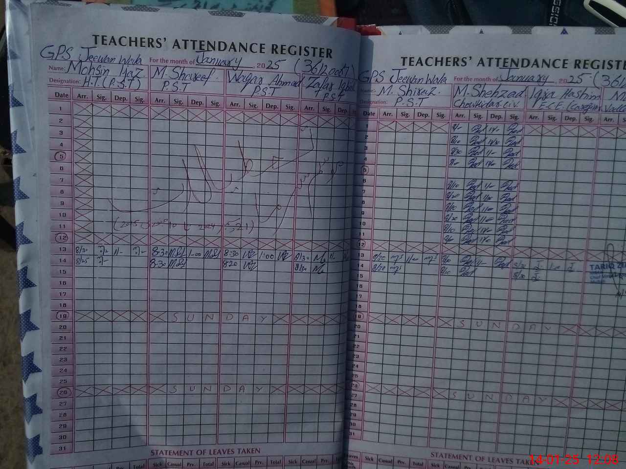 | CNIC | Full Name | Designation | R/C | Absence During Last Calender Month |