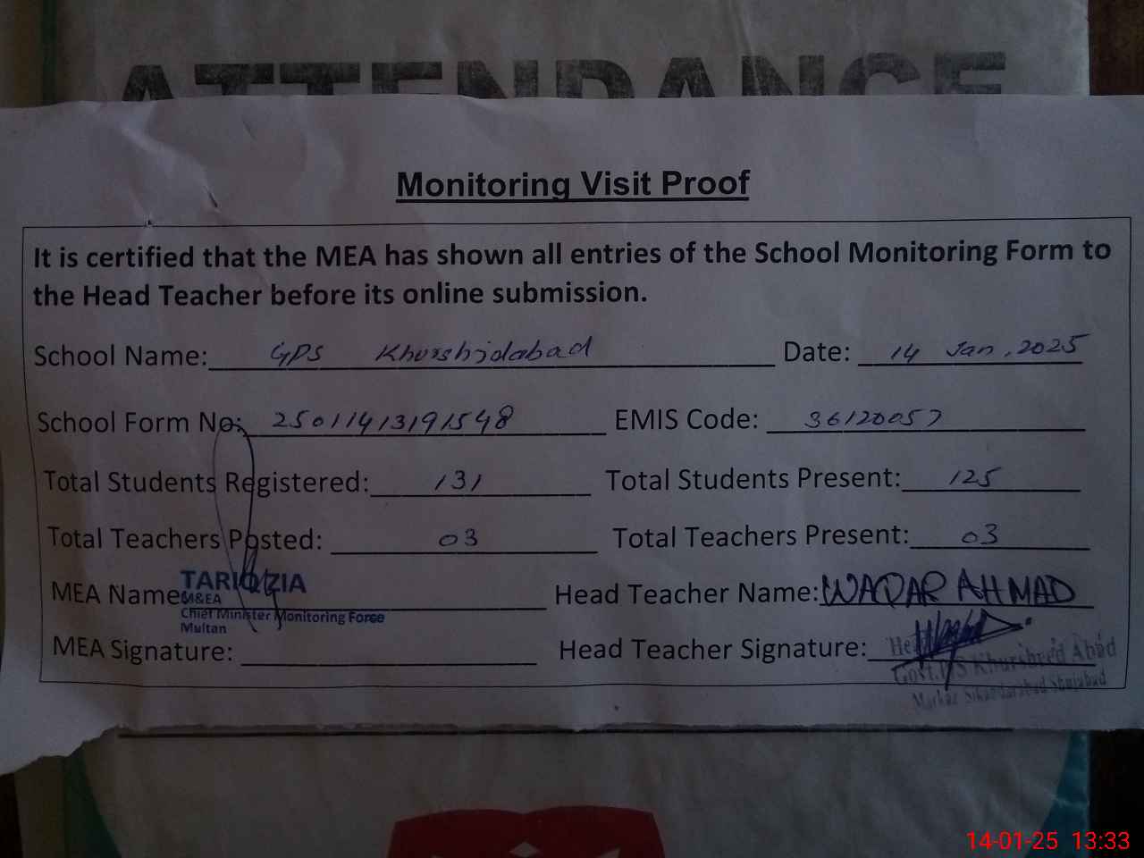 | EMIS Code: 36120057 | Name of School: GPS KHURSHID ABAD P/O SHUJABAD | |||