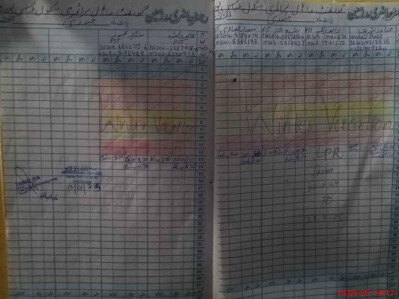 | Remarks (Use Separate Page if Required): NSB statement provided UpTo 16 Dec 2024 Chokidar hired from NSB funds Student attendance as per roznamcha Afternoon student physical attendance marked | |||||