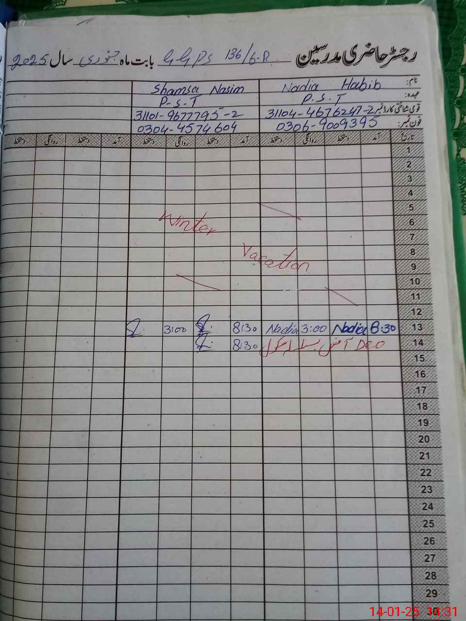 | Name: Sh**** Ak**** Designation: (School Headmaster's/Headmistress's) PST Phone/Cell Number: 03**** |
