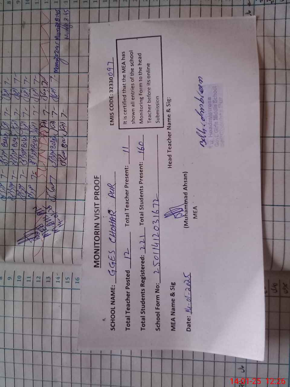 | EMIS Code: 32330097 | Name of School: GGES CHOHAR PUR | |||