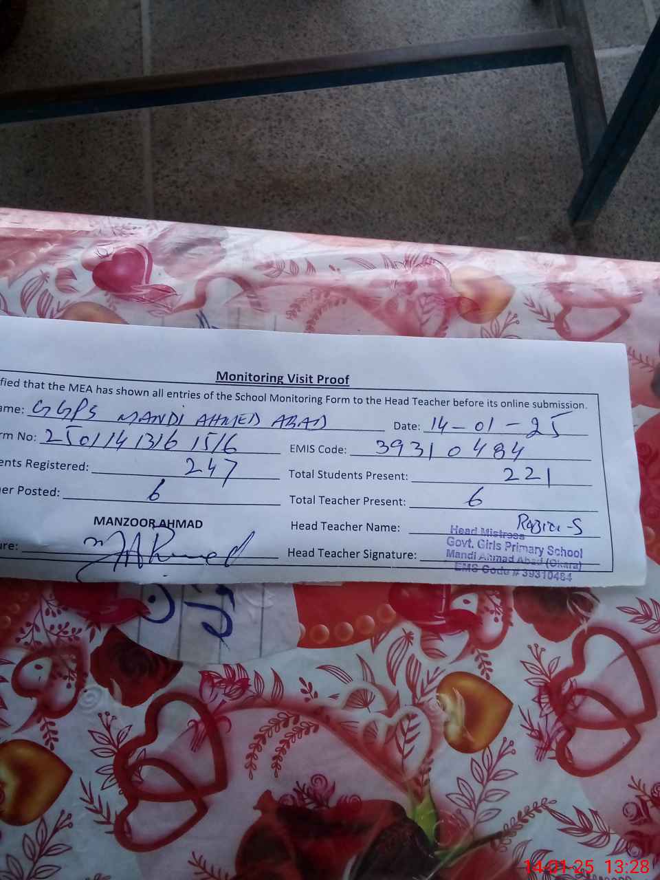 | EMIS Code: 39310484 | Name of School: GGPS MANDI AHMED ABAD | |||