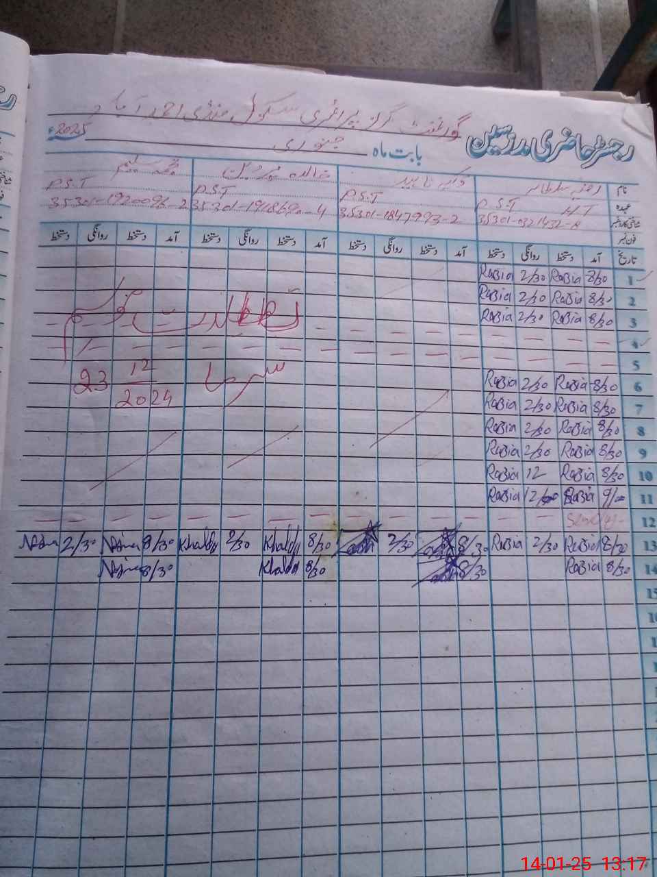 | Name: Ra**** Su**** Designation: (School Headmaster's/Headmistress's) PST Phone/Cell Number: 03**** |