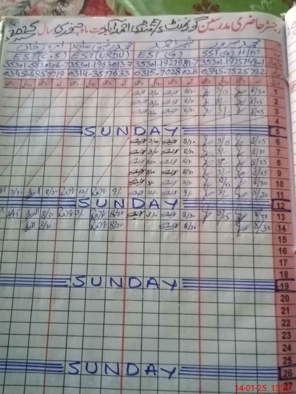 | Name: MU**** AZ**** BH**** Designation: (School Headmaster's/Headmistress's) SST GEN Phone/Cell Number: 03**** |