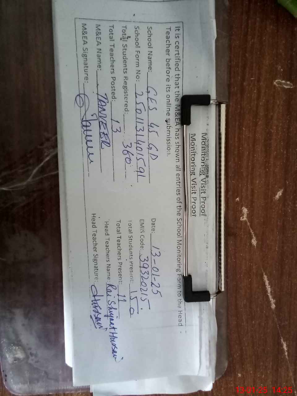 | EMIS Code: 39320215 | Name of School: GHS CHAK 45/G.D | |||