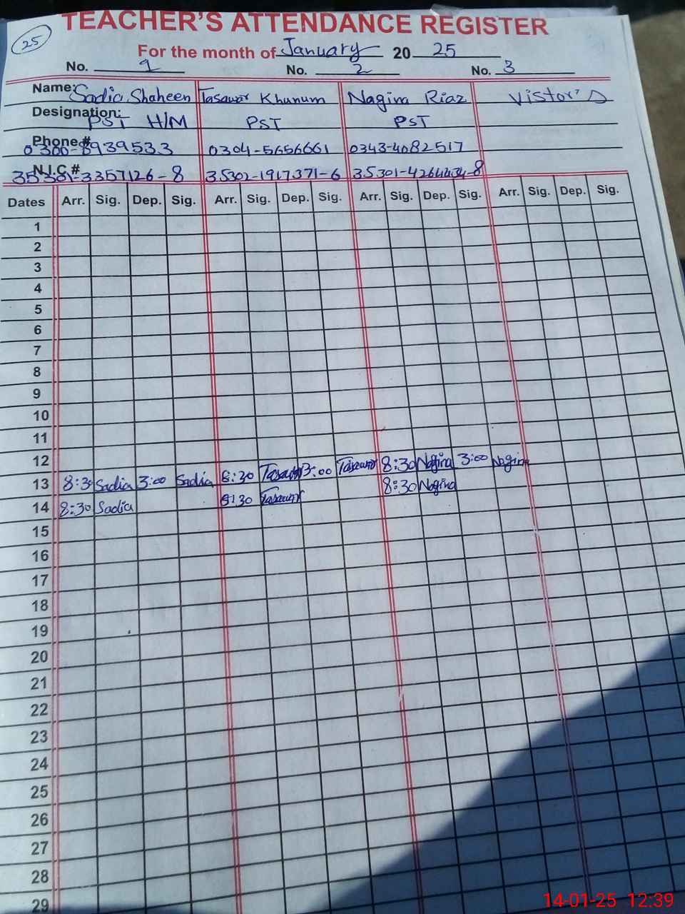 | Name: Sa**** Sh**** Designation: (School Headmaster's/Headmistress's) PST Phone/Cell Number: 03**** |