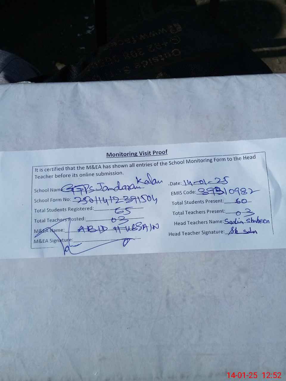 | EMIS Code: 39310982 | Name of School: GGPS JANDARAN KALAN | |||