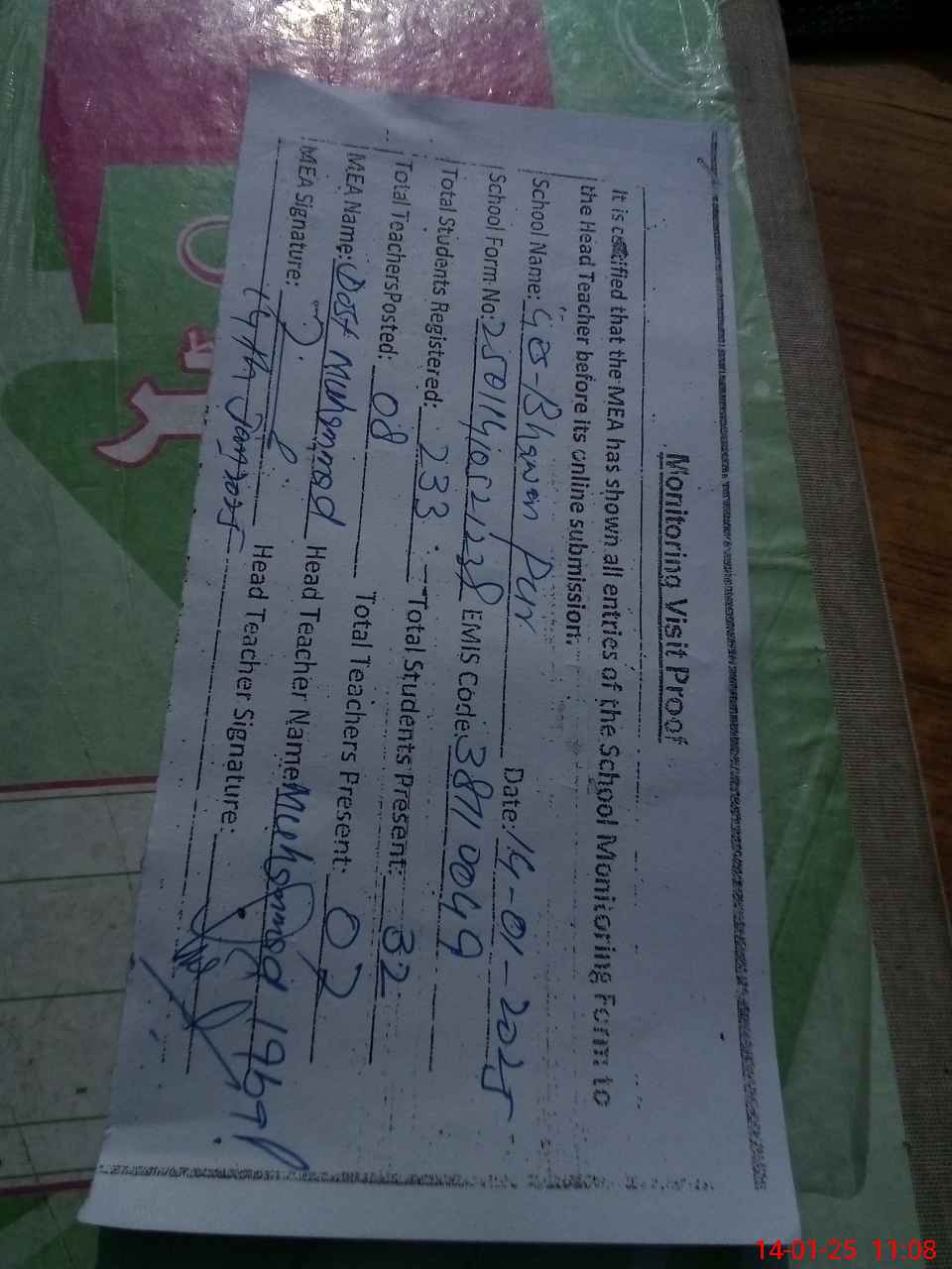 | Name: MU**** IQ**** Designation: (School Headmaster's/Headmistress's) SST Phone/Cell Number: 03**** |