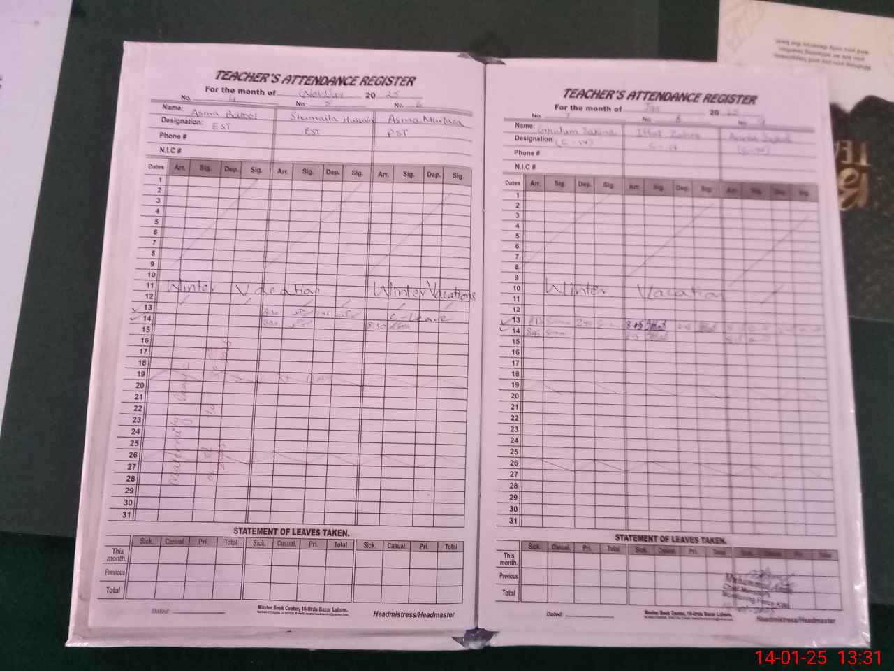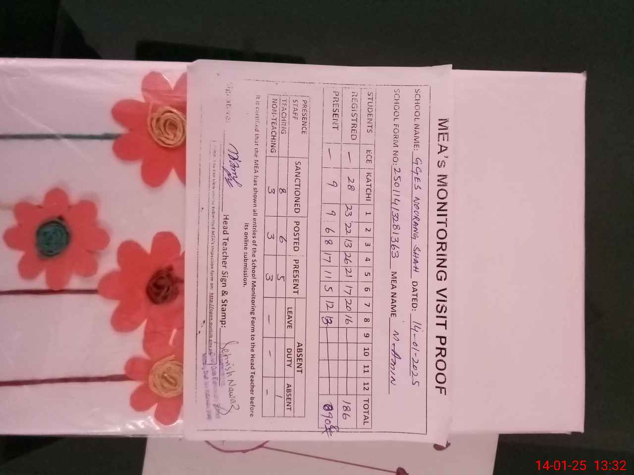 | Attendance Register | Head Teacher | MEA with School | Visit Proof |