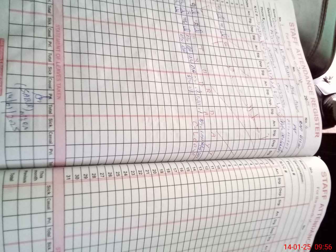 | CNIC | Full Name | Designation | R/C | Absence During Last Calender Month |