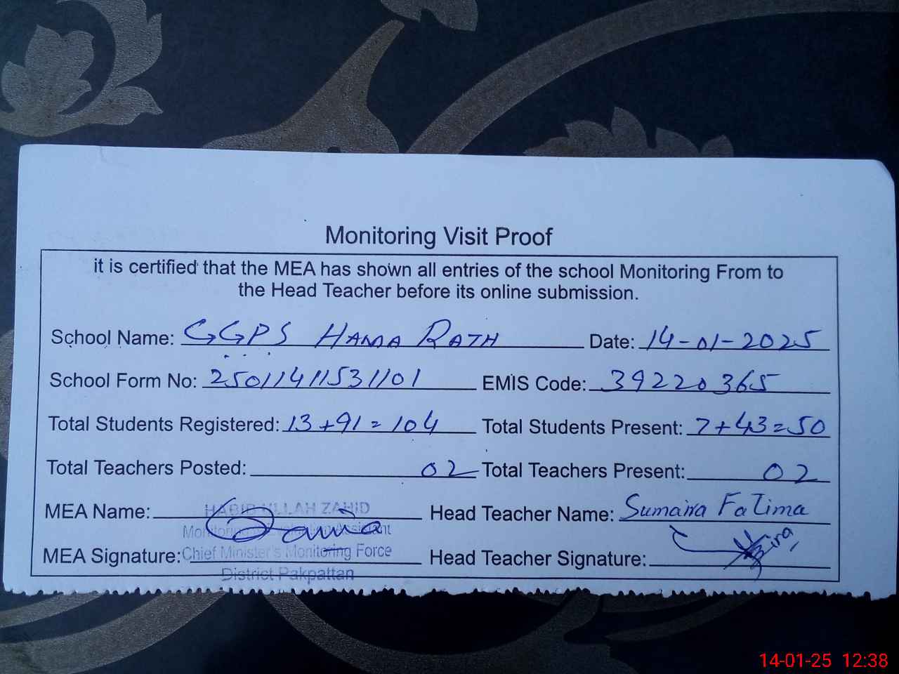 | EMIS Code: 39220365 | Name of School: GGPS HAMA RATH | |||
