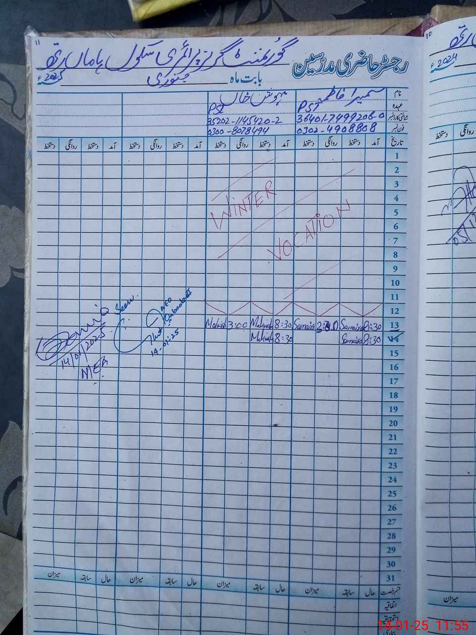 | Name: SU**** FA**** Designation: (School Headmaster's/Headmistress's) PST Phone/Cell Number: 03**** |