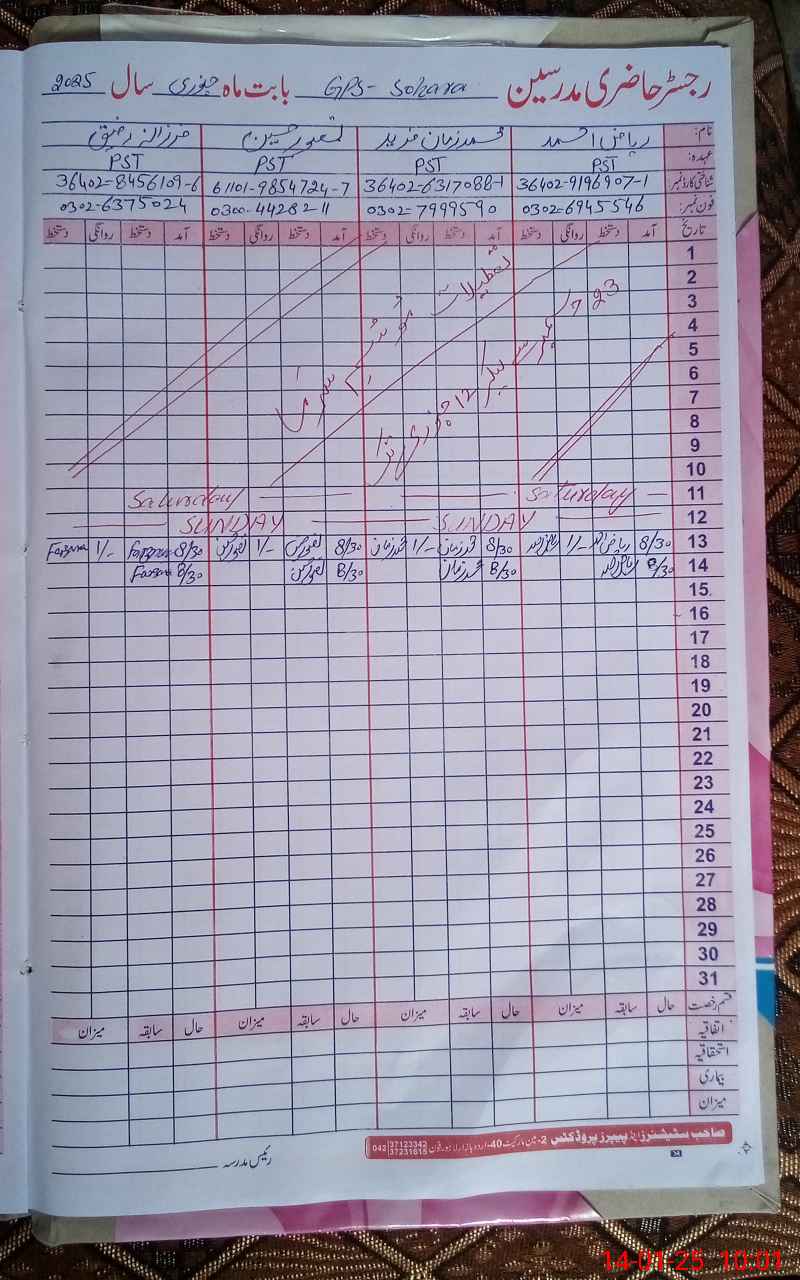 | Name: RI**** AH**** Designation: (School Headmaster's/Headmistress's) PST Phone/Cell Number: 03**** |