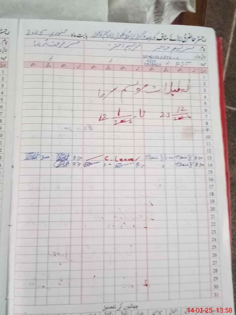 | CNIC | Full Name | Designation | R/C | Absence During Last Calender Month |