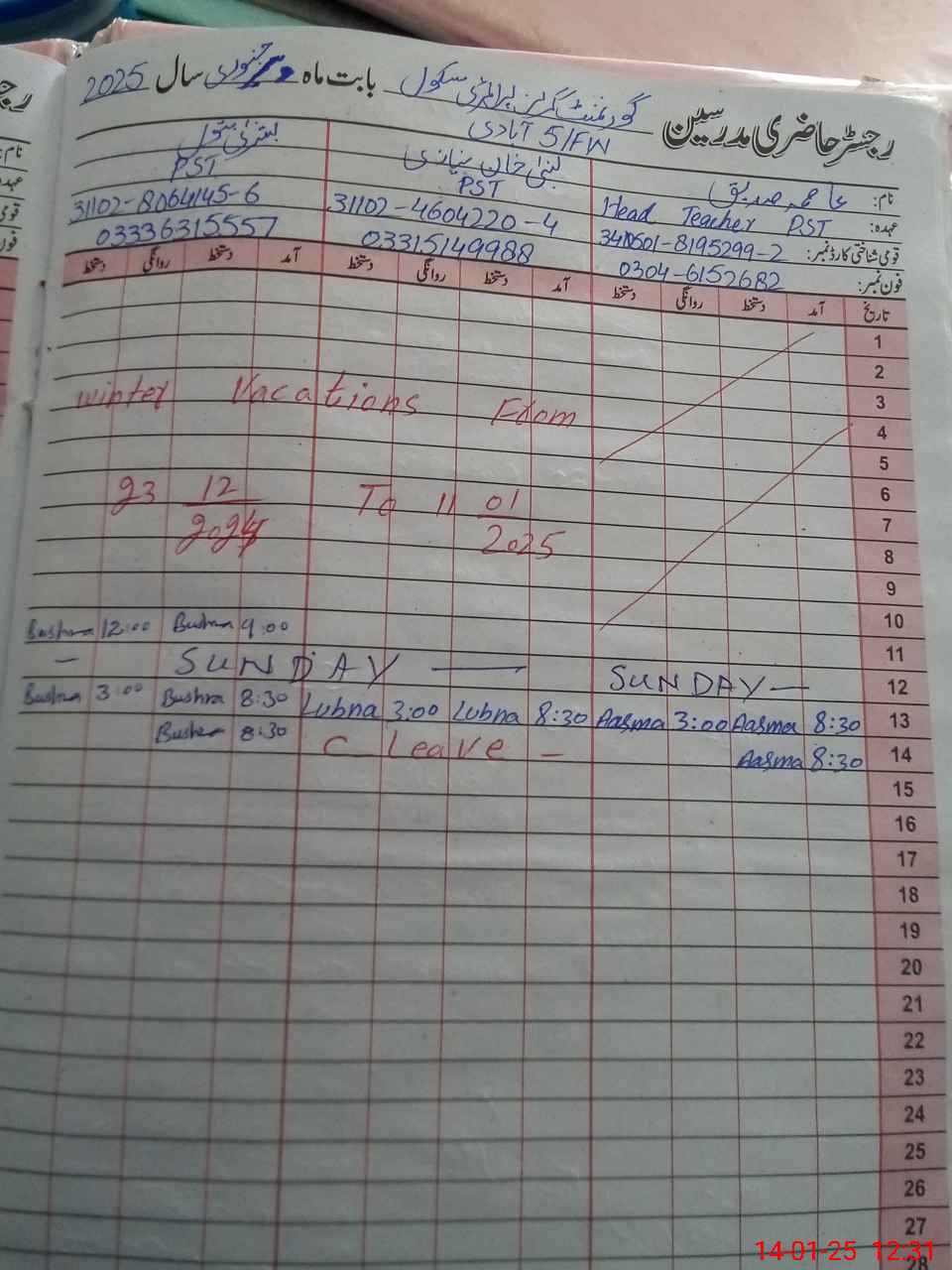 | Name: As**** Si**** Designation: (School Headmaster's/Headmistress's) PST Phone/Cell Number: 03**** |