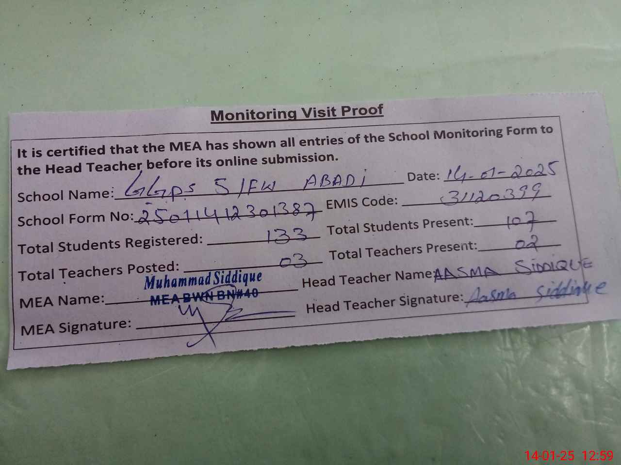 | EMIS Code: 31120399 | Name of School: GGPS 5/FW ABADI | |||
