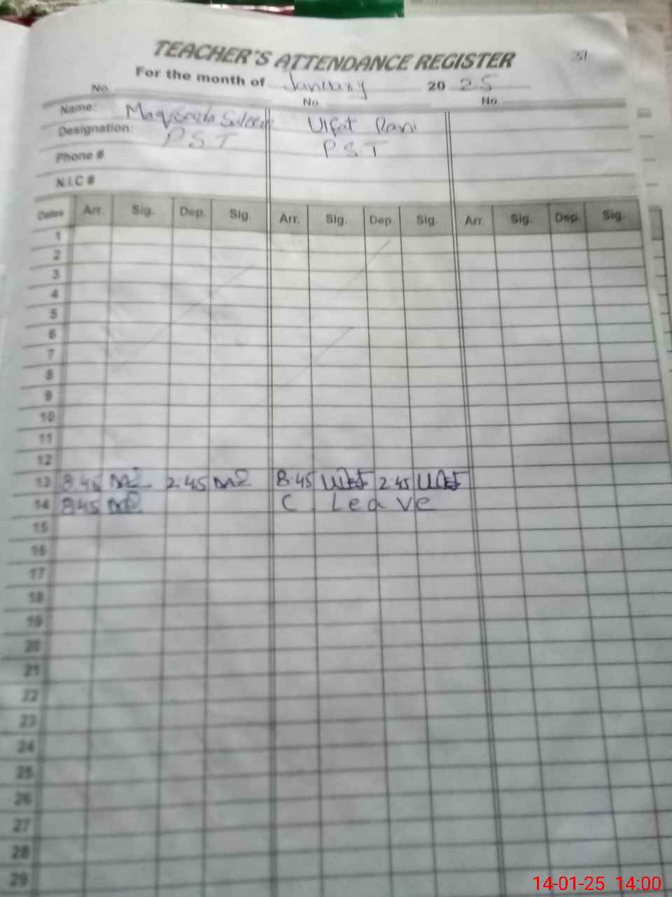 | Name: Ma**** Sa**** Designation: (School Headmaster's/Headmistress's) PST Phone/Cell Number: 03**** |