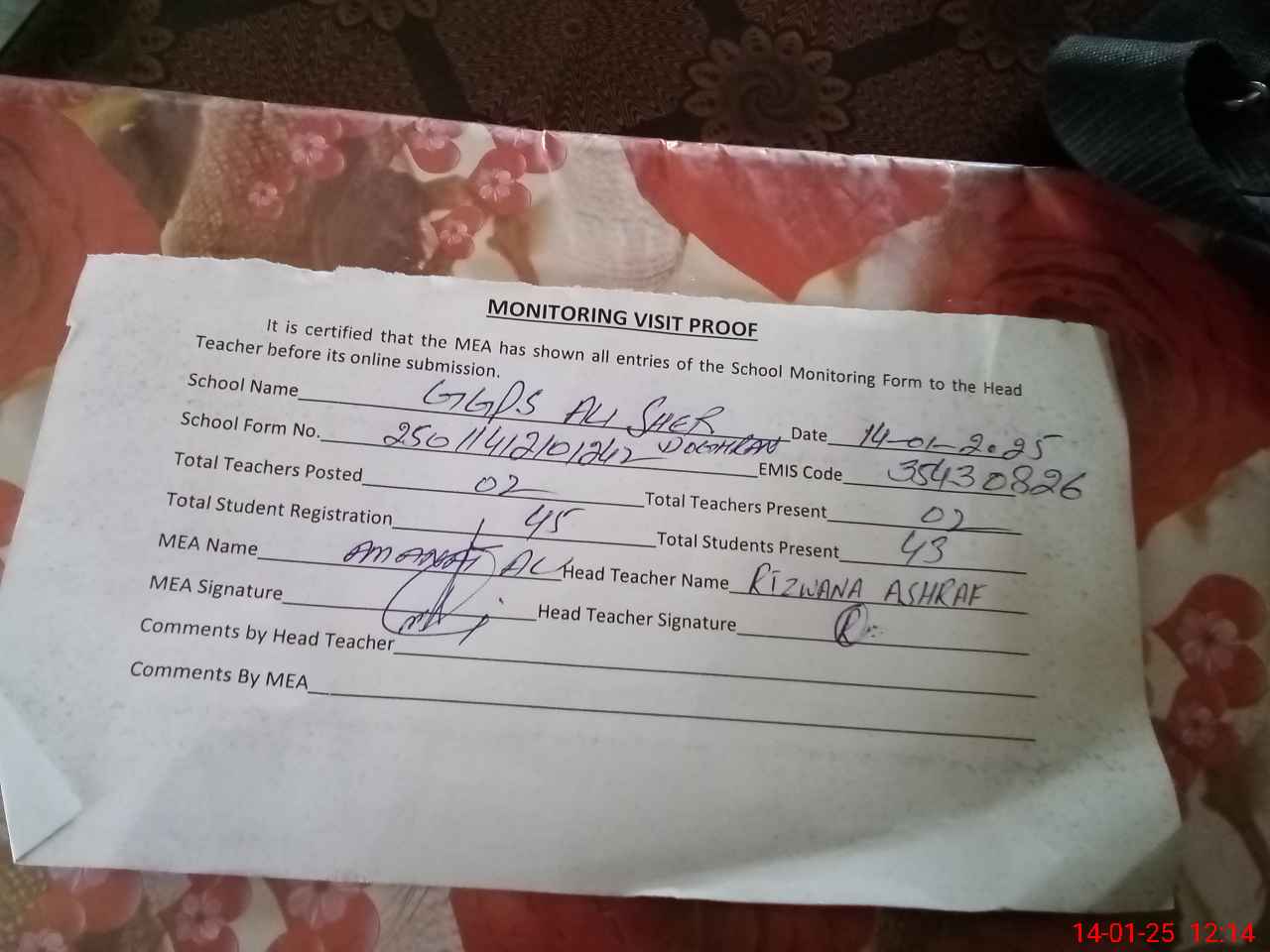 | EMIS Code: 35430826 | Name of School: GGPS ALI SHER DOGRAN | |||
