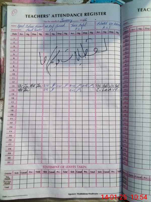 | CNIC | Full Name | Designation | R/C | Absence During Last Calender Month |