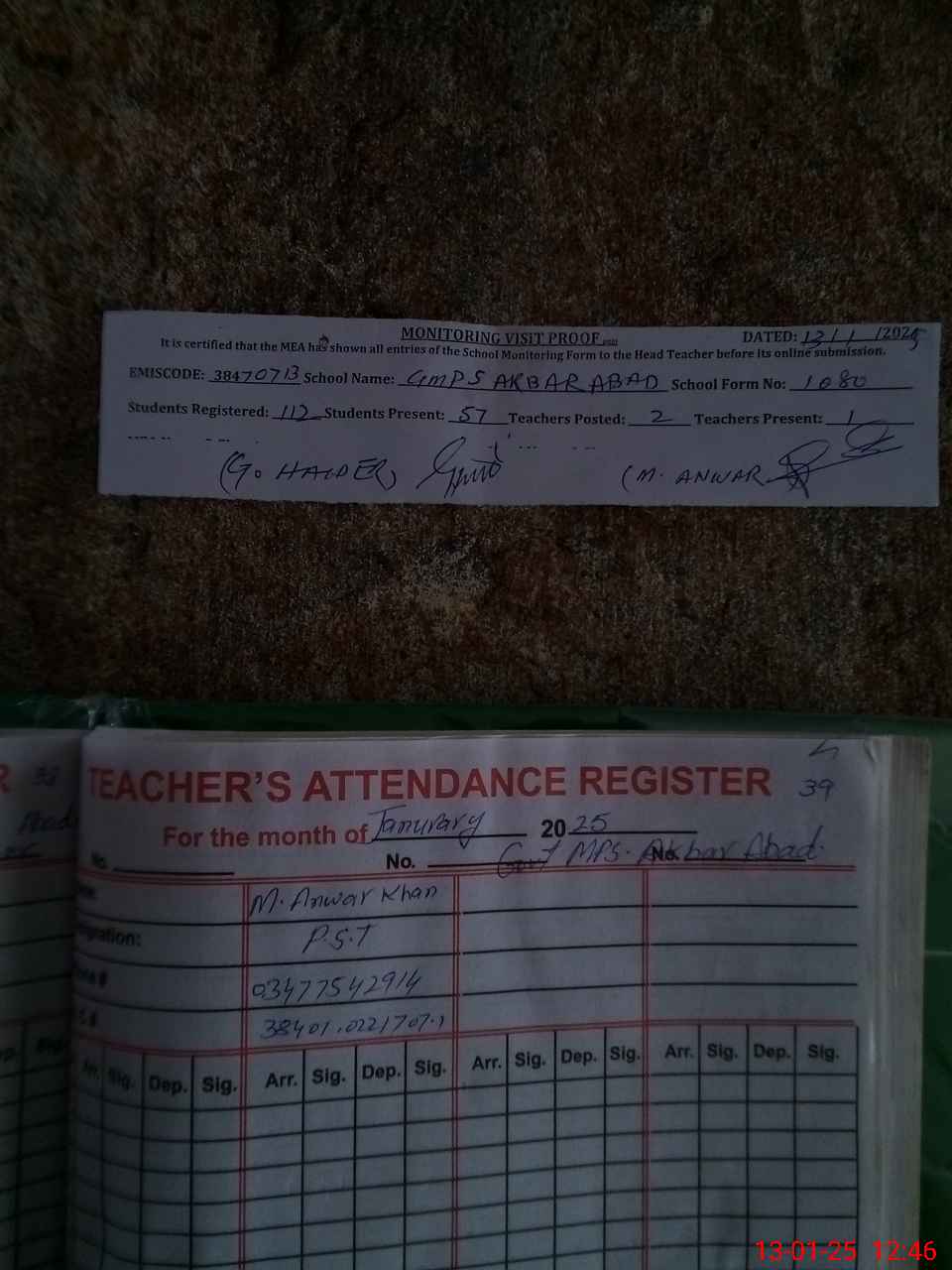 | Attendance Register | Head Teacher | MEA with School | Visit Proof |